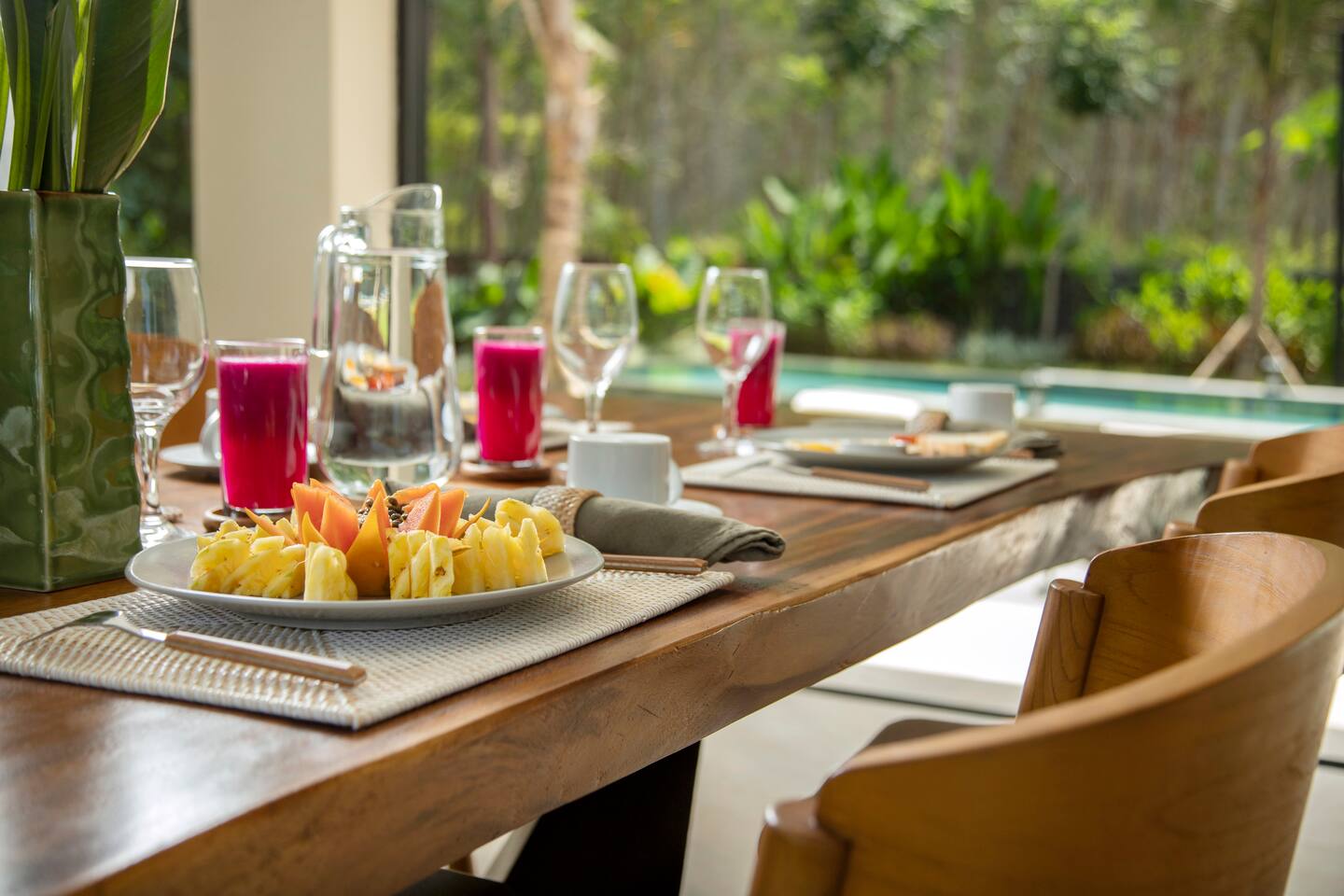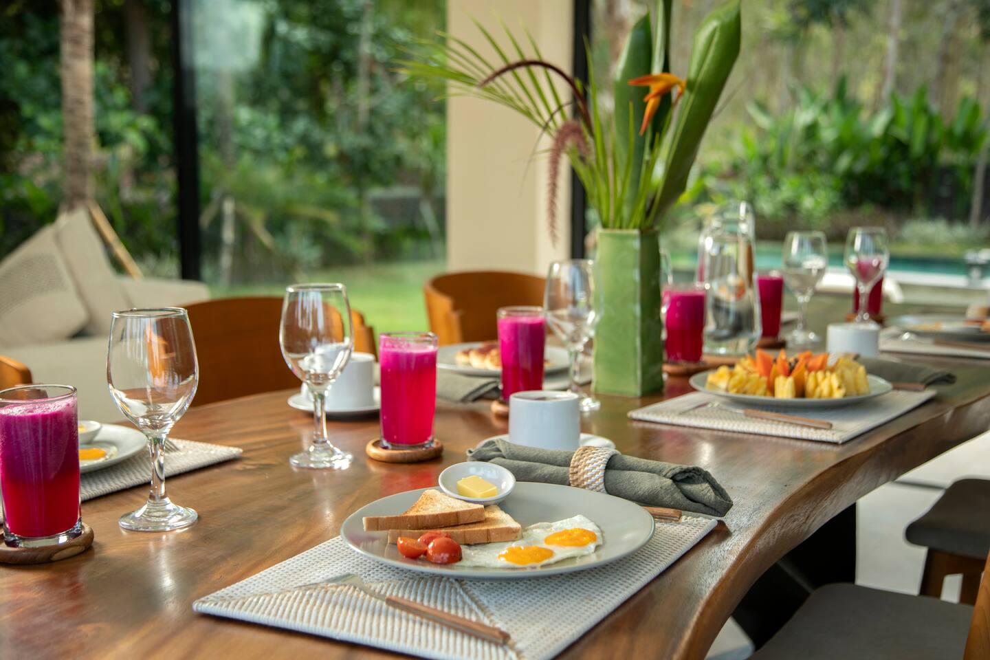 The villa is a 3-bedroom luxury villa plus maid room with a 1000 sqm garden and private access to Serangan beach and its renowned surf spot. Our dedicated team will cater to your needs: in-villa massage, surf lessons,... or bonfire. Within 3-minute walk are 2 high quality restaurants, and more are less than 5 minutes by drive. The villa is ecofriendly, running on solar panels. Kitchen is fully equipped. Breakfast is included. AC and high speed wi-fi in the villa.