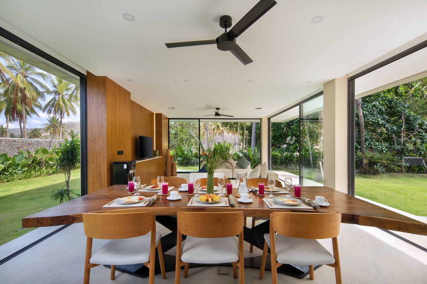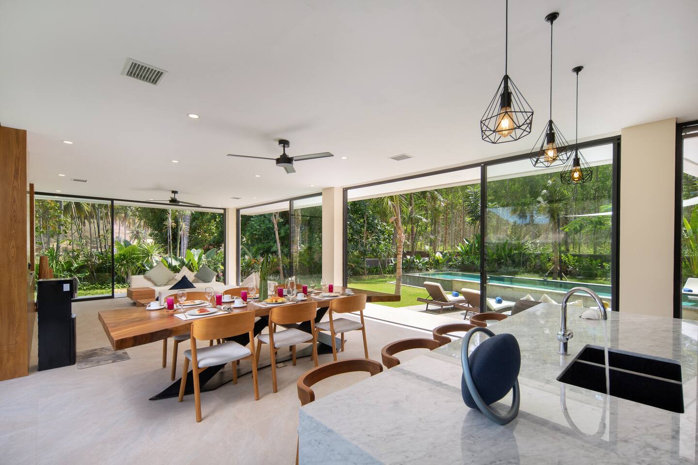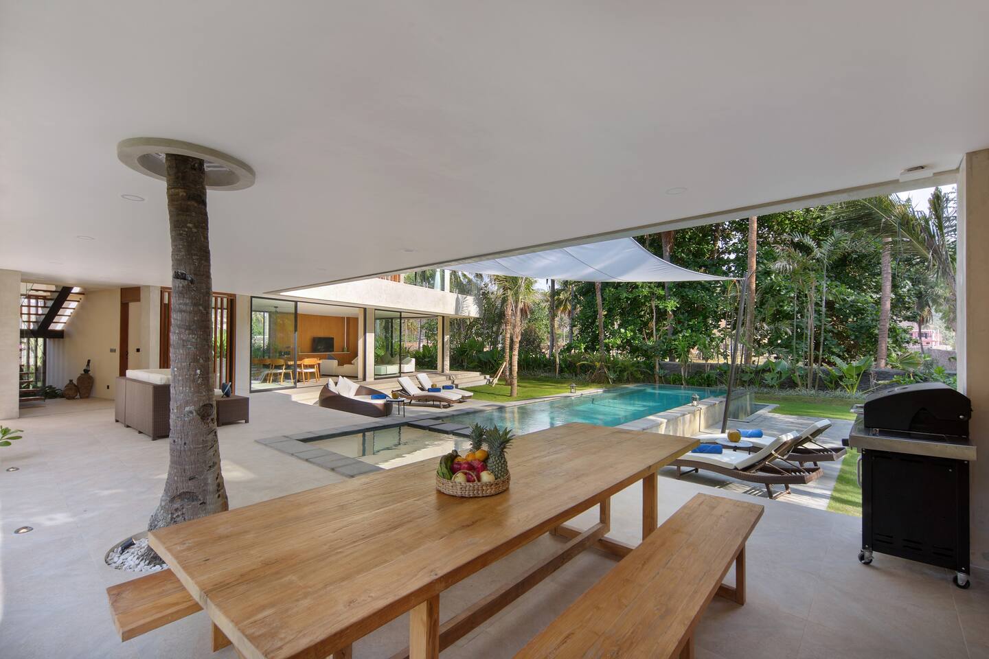 First floor: All bedrooms on this level enjoy forest view, wrap around balcony jointed by a spacious terrace: - Bedroom 1: 2 bunk beds (4 sleepers), ideal for friends or younger traveller + ensuite - Bedroom 2: 2 twin beds + ensuite - Bedroom 3: king-size bed + ensuite Ground floor: - Bedroom 4: 2 bunk beds + ensuite (occasional sleeping quarter) - Fully equipped large open kitchen, ideal for cooking for small groups (with dishwasher) - Indoor and outdoor dining areas - Indoor and outdoor sitting areas - 52 inch smart TV - Outdoor covered terrace - Outdoor furniture and sun loungers - Infinity pool with shallow section for younger children THE SPACE Villa Selong Belanak is 35 min from the Lombok International airport and 35 min from Kuta/Mandalika. In the heart of Serangan, Villa Selong Belanak is steps away to the sandy beach. Take morning walks on the oceanfront to enjoy the tranquil sunrise, or be mesmerized by the peaceful sunset with friends over a few drinks to celebrate your vacation. This villa will redefine your dream vacation. Solar powered, Villa Selong Belanak is designed to unite friends and families in the tranquillity of Lombok. The ocean, forest and mountains around you shows you the true meaning of being surrounded by nature. Staff on-duty will cater to your needs and requests. Let the team organize your day to create a hassle-free, unforgettable visit, starting from the plane’s touch down: drivers, scooters, cars, surfing, massage, yoga, food & groceries deliveries, laundry, and so much more* to look forward to. Several restaurants are located around the neighbourhood within walking distance. If you prefer to stay-in (yes, the villa is snug and comfy), your orders can be delivered to the villa. *Additional charge applicable. Note Villa Selong Belanak is a non-smoking villa. Smoke detectors are installed in the premise. Smoking is permitted in the outdoor area. On behalf of young children and people with respiratory issues, thank you for not smoking in the villa. Villa Selong Belanak is a sister villa with its neighbor Villa Serangan. Please inquire for special grouped offers.