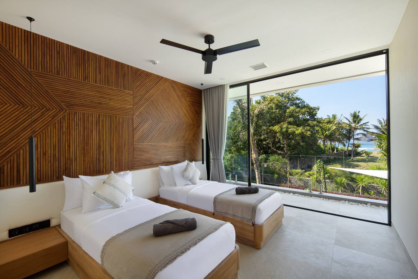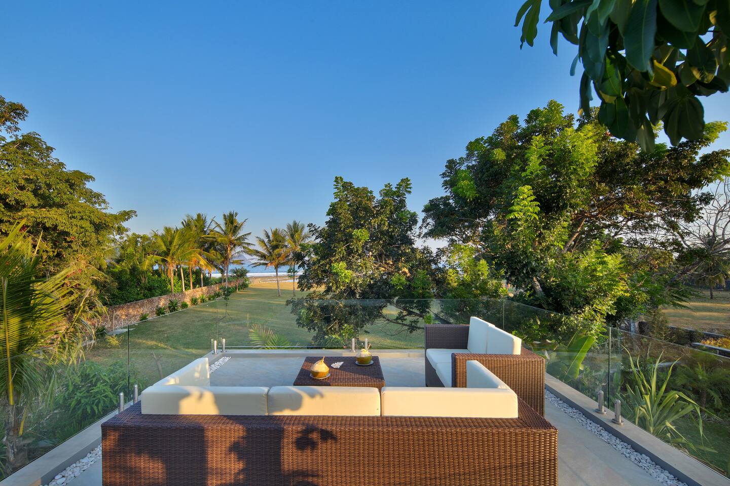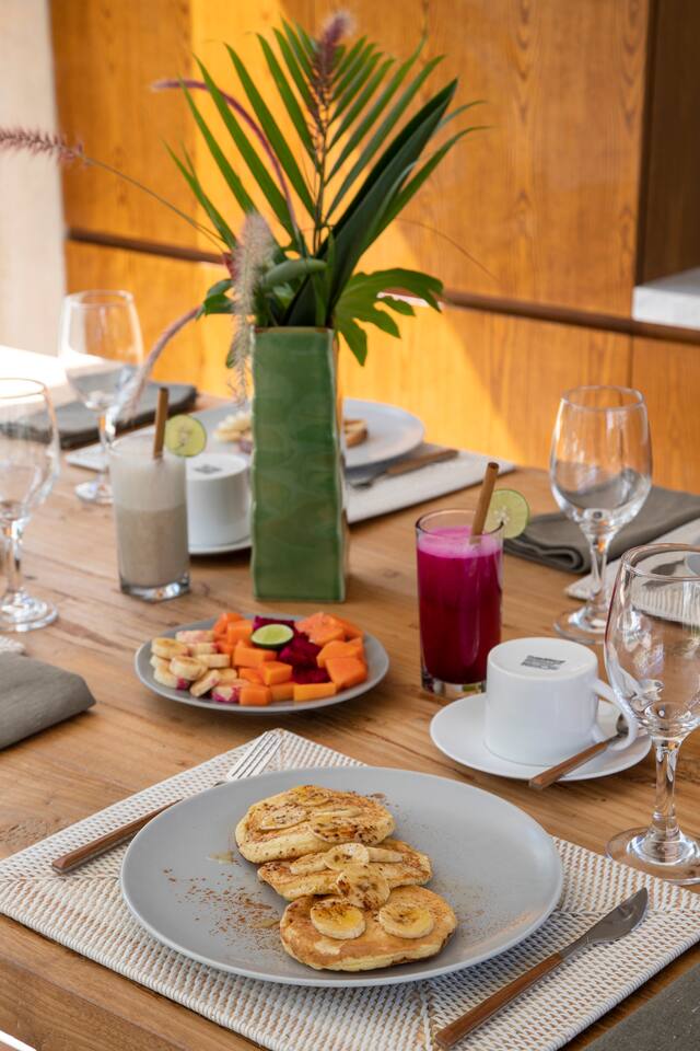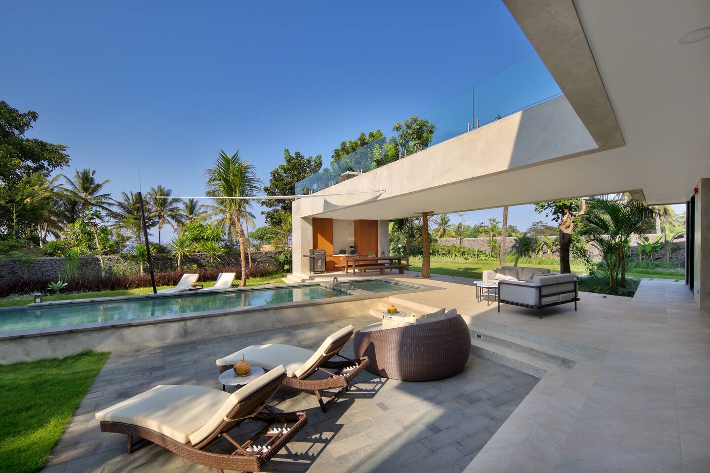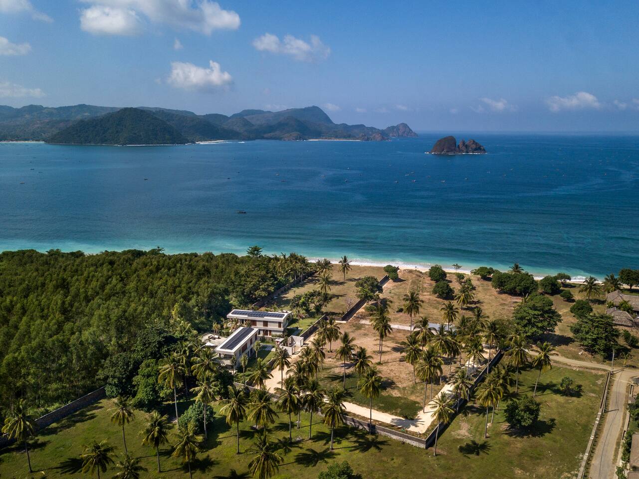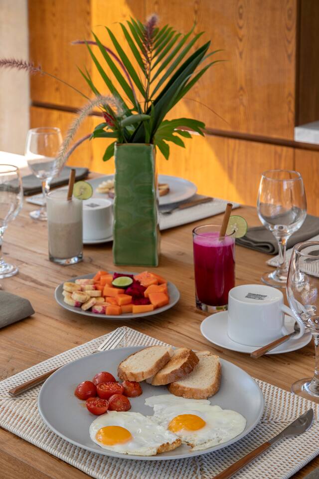 First floor: All bedrooms on this level enjoys oceanfront view, wrap around balcony jointed by a spacious terrace: - Bedroom 1: 4 bunk beds, ideal for friends or younger travellers + ensuite - Bedroom 2: 2 twin beds (convertible to 1 king-size bed) + ensuite - Bedroom 3: king-size bed + ensuite Ground floor: - Bedroom 4: king size bed + ensuite - Fully equipped large open kitchen, ideal for cooking for small groups (with dishwasher) - Indoor and outdoor dining areas - Indoor and outdoor sitting areas - 52 inch smart TV - Outdoor covered terrace - Outdoor furniture and sun loungers - Infinity pool with shallow section for younger children Villa Serangan is 35 min from the Lombok International airport and 35 min from Kuta/Mandelika. In the heart of Serangan, Villa Serangan is steps away to the sandy beach. Take morning walks on the oceanfront to enjoy the tranquil sunrise, or be mesmerized by the peaceful sunset with friends over a few drinks to celebrate your vacation. This villa will redefine your dream vacation. Solar powered, Villa Serangan is designed to unite friends and families in the tranquillity of Lombok. The ocean, forest and mountains around you shows you the true meaning of being surrounded by nature. Staff on-duty will cater to your needs and requests. Let the team organize your day to create a hassle-free, unforgettable visit, starting from the plane’s touch down: drivers, scooters, cars, surfing, massage, yoga, food & groceries deliveries, laundry, and so much more* to look forward to. Several restaurants are located around the neighbourhood within walking distance. If you prefer to stay-in (yes, the villa is snug and comfy), your orders can be delivered to the villa. *Additional charge applicable.