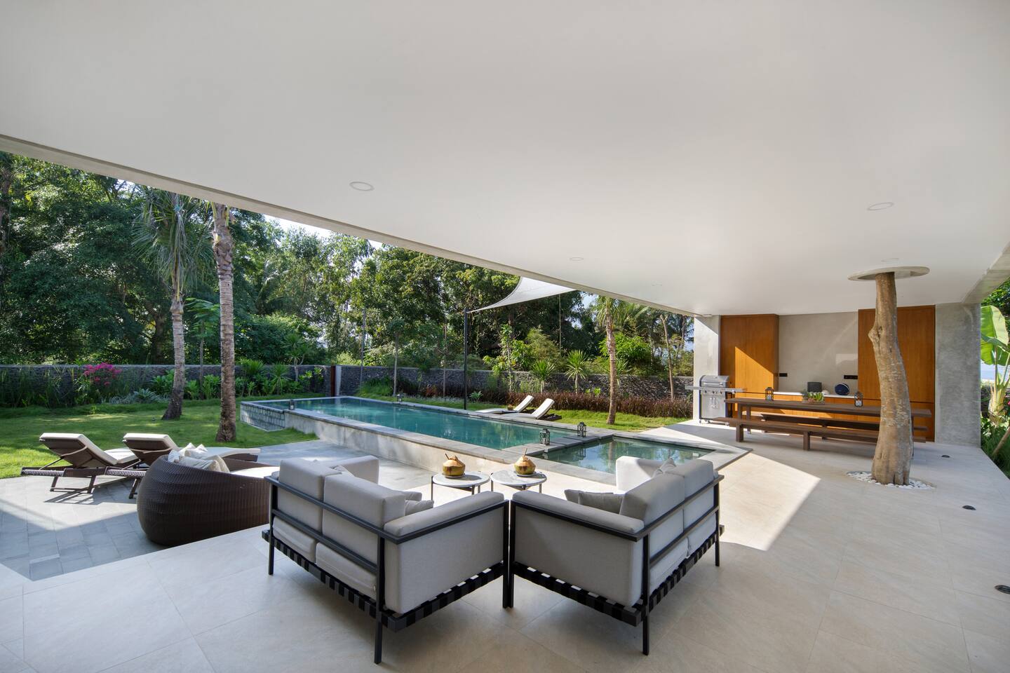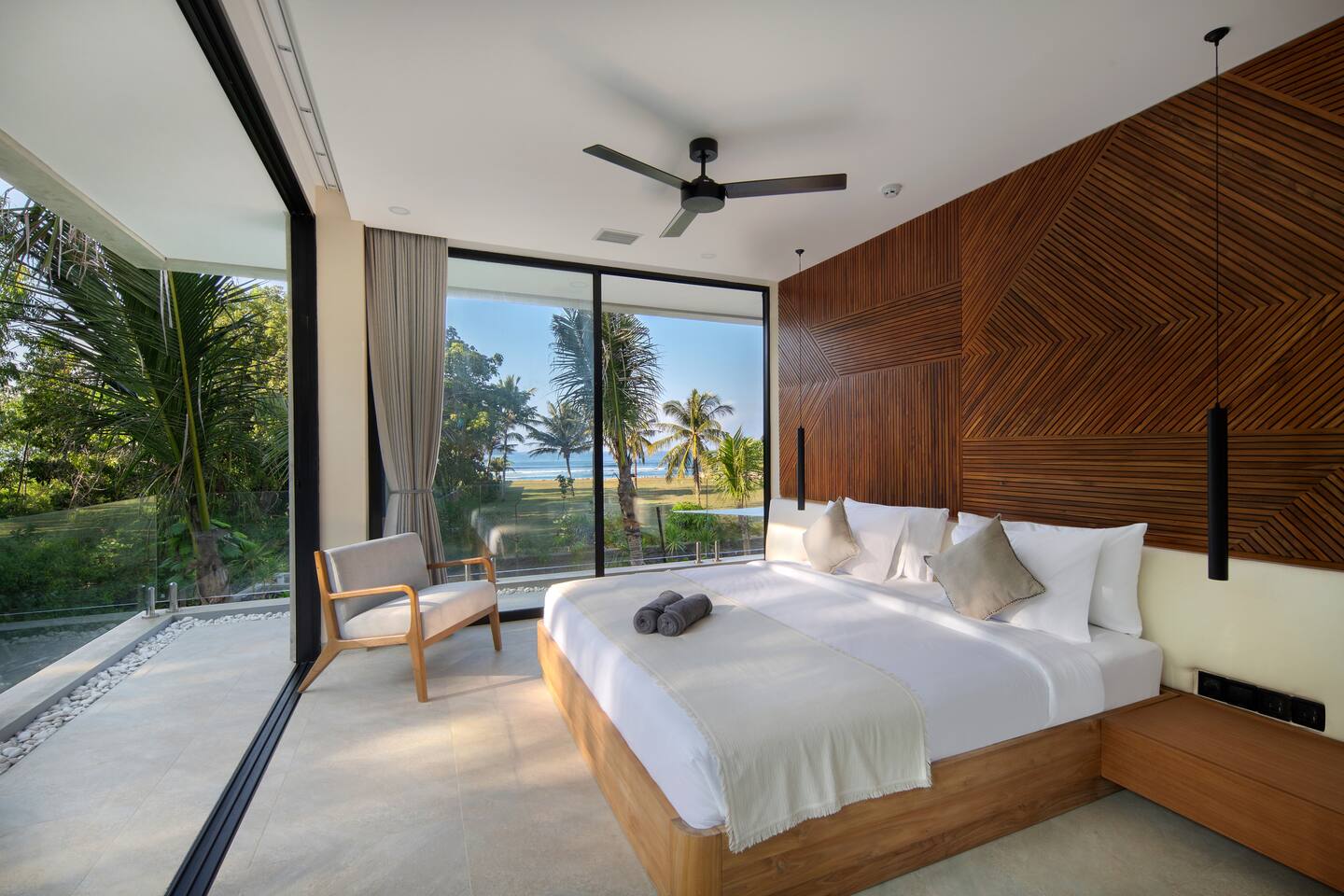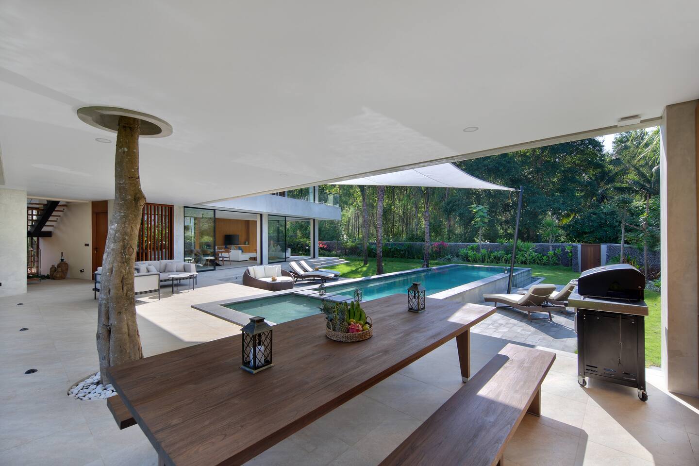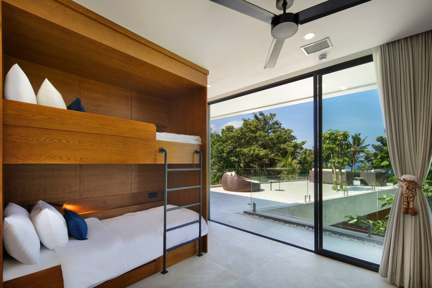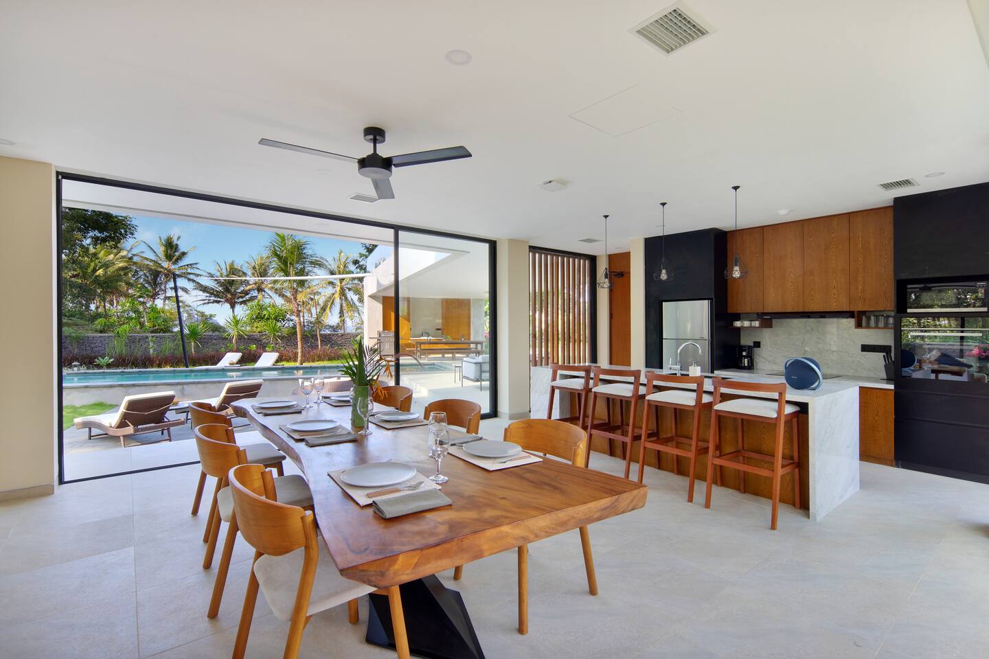 First floor: All bedrooms on this level enjoys oceanfront view, wrap around balcony jointed by a spacious terrace: - Bedroom 1: 4 bunk beds, ideal for friends or younger travellers + ensuite - Bedroom 2: 2 twin beds (convertible to 1 king-size bed) + ensuite - Bedroom 3: king-size bed + ensuite Ground floor: - Bedroom 4: king size bed + ensuite - Fully equipped large open kitchen, ideal for cooking for small groups (with dishwasher) - Indoor and outdoor dining areas - Indoor and outdoor sitting areas - 52 inch smart TV - Outdoor covered terrace - Outdoor furniture and sun loungers - Infinity pool with shallow section for younger children Villa Serangan is 35 min from the Lombok International airport and 35 min from Kuta/Mandelika. In the heart of Serangan, Villa Serangan is steps away to the sandy beach. Take morning walks on the oceanfront to enjoy the tranquil sunrise, or be mesmerized by the peaceful sunset with friends over a few drinks to celebrate your vacation. This villa will redefine your dream vacation. Solar powered, Villa Serangan is designed to unite friends and families in the tranquillity of Lombok. The ocean, forest and mountains around you shows you the true meaning of being surrounded by nature. Staff on-duty will cater to your needs and requests. Let the team organize your day to create a hassle-free, unforgettable visit, starting from the plane’s touch down: drivers, scooters, cars, surfing, massage, yoga, food & groceries deliveries, laundry, and so much more* to look forward to. Several restaurants are located around the neighbourhood within walking distance. If you prefer to stay-in (yes, the villa is snug and comfy), your orders can be delivered to the villa. *Additional charge applicable.