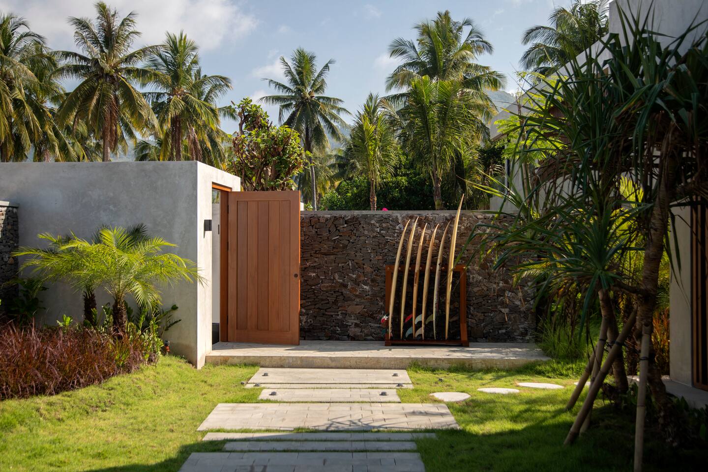 Villa Serangan is a 4-bedroom luxury sea view villa with a 1000 sqm garden and a private access to Serangan beach and its renowned surf spot. Our dedicated team will cater to your needs: in-villa massage, surf lessons,... or bonfire. Within 3-minute walk are 2 high quality restaurants, and more are less than 5 minutes by drive. The villa is ecofriendly, running on solar panels. Kitchen is fully equipped. Breakfast is included. AC and high speed wi-fi in the villa.